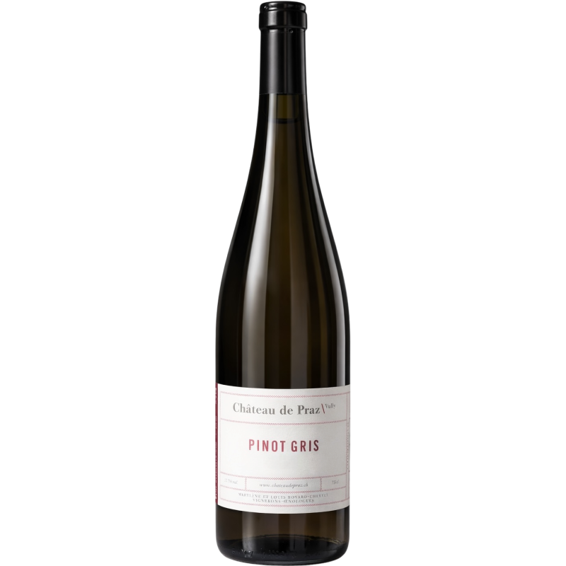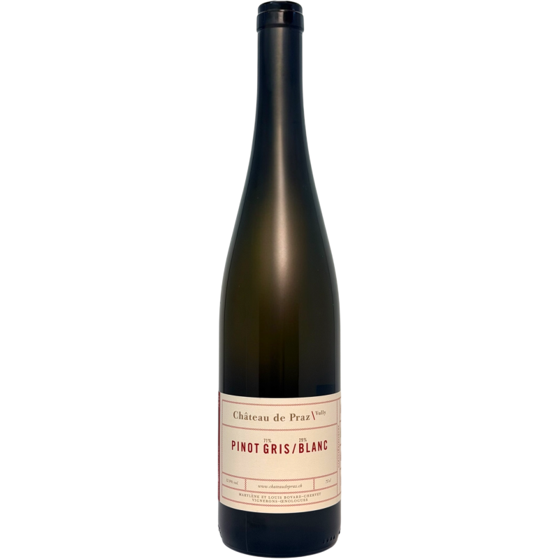 En 2024, le traditionnel Pinot Gris du Château de Praz est devenu exceptionnellement un assemblage de Pinot Gris et de Pinot Blanc. La récolte, plus limitée qu’à l’accoutumée, les a incités à unir ces deux cépages apparentés pour créer un vin équilibré et harmonieux.
